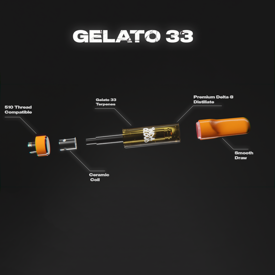 The Gelato 33 Delta 8 Vape Cartridge is expertly designed to provide users a balanced and fulfilling experience. Delta 8 THC is known for its soothing effects that bring mental and physical relief. When you vape this cartridge, you'll likely feel a sense of calm and relaxation. It could alleviate stress and anxiety, making it a nice choice for winding down after a long day. While physical relaxation occurs, you might also notice enhanced mental clarity or focus. Remember that effects can vary based on factors such as tolerance, body chemistry, and the quantity vaped.