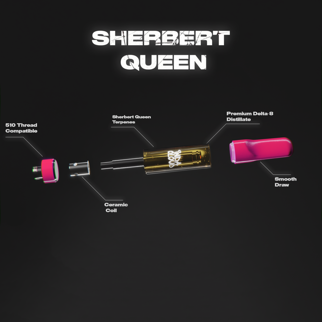 The Sherbert Queen Delta 8 Vape Cartridge is formulated with premium Delta-8 distillate, natural terpenes, and no fillers or cutting agents. The Delta-8 THC is sourced from top-notch hemp growers and refined to its purest form. The addition of natural terpenes adds to the cartridge's unique flavor profile, offering a delightful vaping experience.
